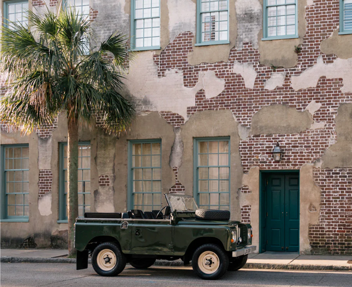 "Dock Series III" photo print of a classic Land Rover in historic downtown Charleston, SC.