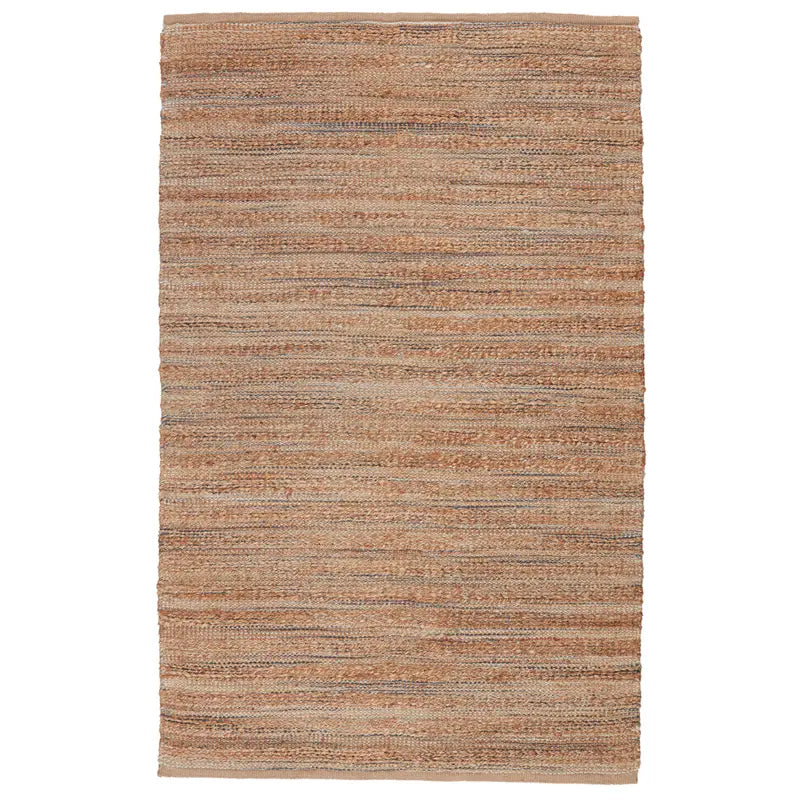 A natural area rug with a contemporary touch, this cotton-backed layer pops with a warm wheat hue and bright white accents. The organic texture of the hand-woven rayon and jute offers an intriguing feel and bohemian-inspired style.